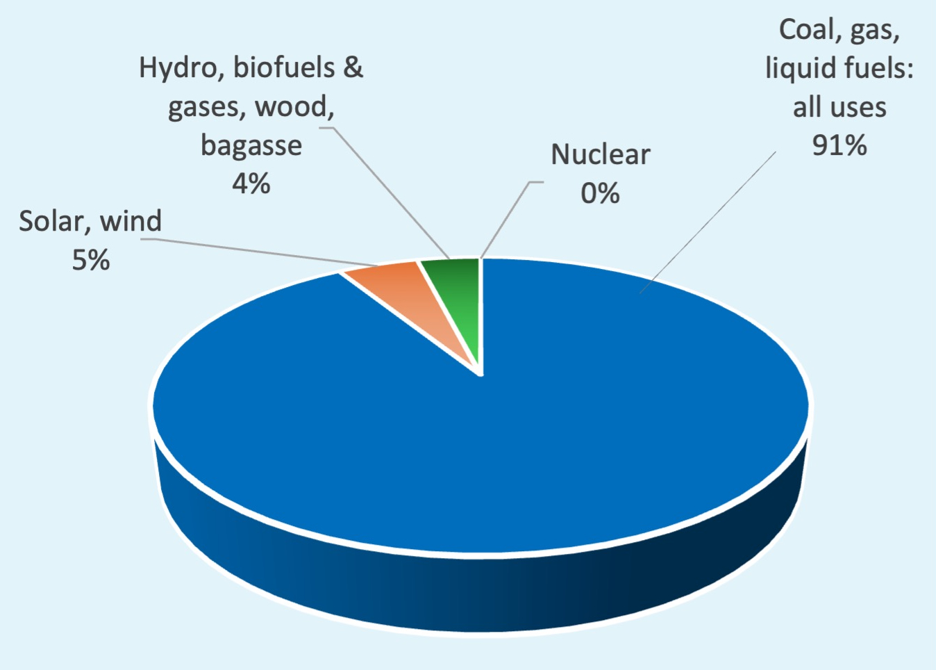 • 91 per cent from fossil fuels (coal, gas, liquid fuels).